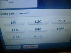 画面に表示される金額は10ドル、20ドル、30ドル、50ドル、80ドル、100ドル、150ドルです。
