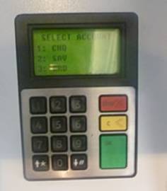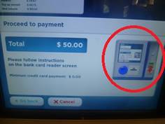 「チェック(Cheque)」、「セービング(Saving)」、「クレジット(Credit)」から精算方法を選択します。