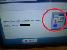 精算された後はReaderにHOPカードをかざすよう指示されます。