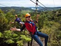 ジップラインとは、木々の間に張られたワイヤーロープを滑車を使って滑り降りるアクティビティです。Flying foxともいいます。大人でも子供でも楽しめます。最近は日本でも盛んですが、ニュージーランドはかなりレベルが高いです。絶叫系もたくさんあります。