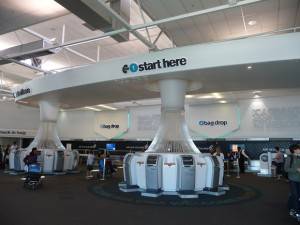 オークランド国内線ターミナルではe-ticketを使って、自分でチェックインをします。機械にe-ticketのバーコードをかざし、航空券を発行してもらいます。また預け荷物の数を入力する箇所があり、航空券と共に預かり荷物につけるタグも発行されます。