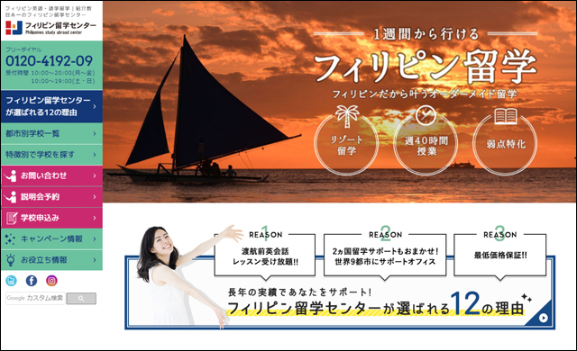 フィリピン留学センターは、語学学校、現地の中学・高校などフィリピン国内の150以上の学校をご紹介している留学情報サイトです。スタッフが実際に訪問して確認した最新情報や現地観光情報などフィリピンに関すること役立つ情報をお伝えしています。フィリピンで基礎英語力をつけてからニュージーランドへご留学される2カ国留学などもご紹介しておりますので、是非ご確認下さい。