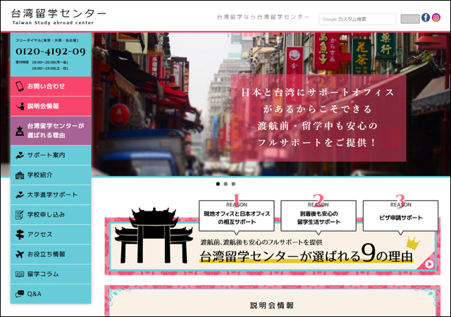 台湾留学センターはお得・安全・親日で定評のある台湾への留学情報や、大学付属の語学学校の情報をご案内している留学情報サイトです。学校については、7つの地域の30を超える学校の特徴、コース、料金を細かくご紹介しています。大学付属の語学学校なので、質の高い授業に定評がある場所ばかりです。また、現地のお役立ち情報は台湾への留学経験が豊富なスタッフや現地オフィスのスタッフが発信しています。